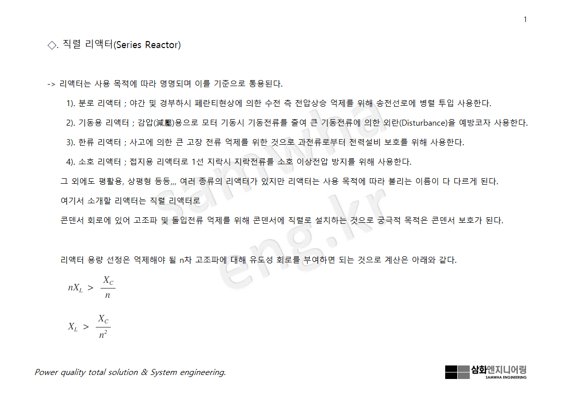 고조파 및 돌입전류 억제를 위해 사용되는 직렬리액터에 대해 아래와 같이 알아본다.