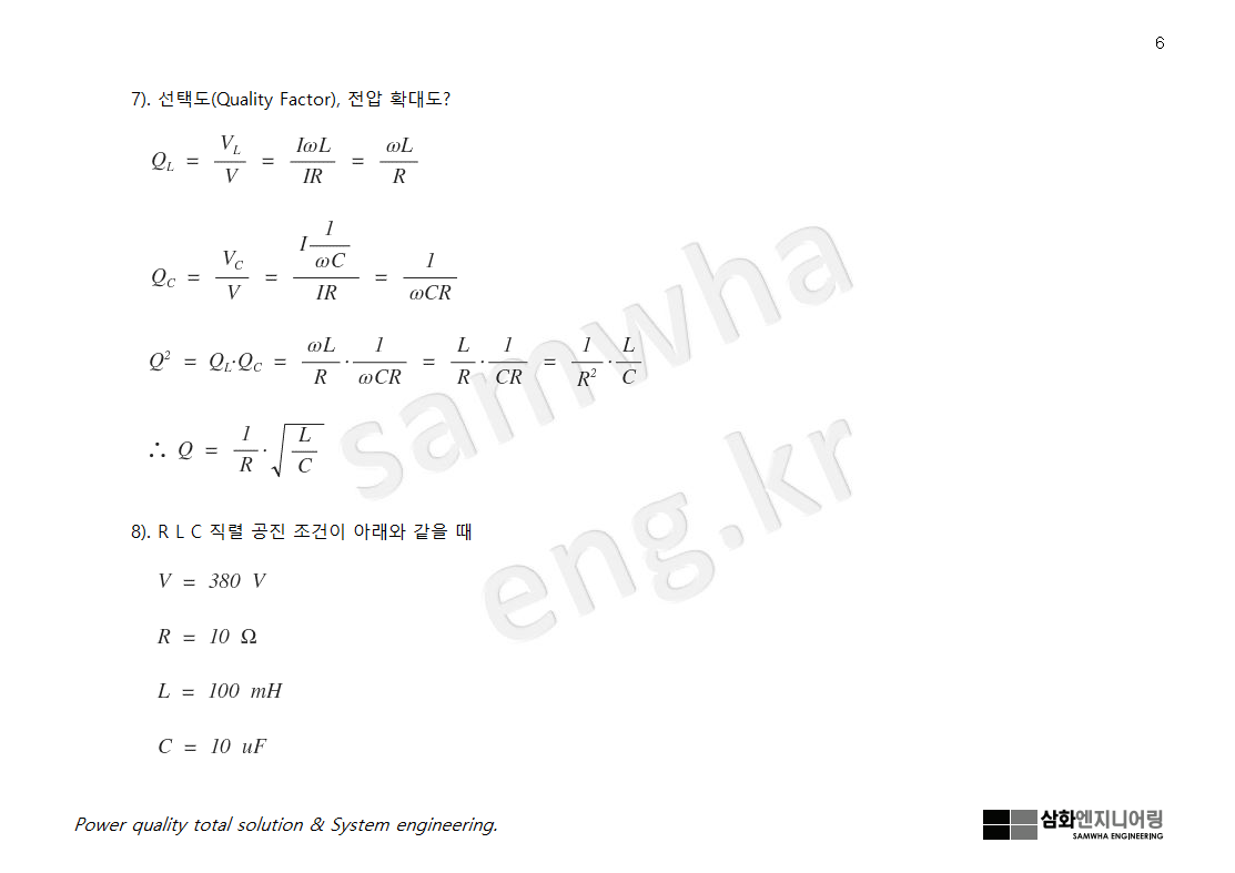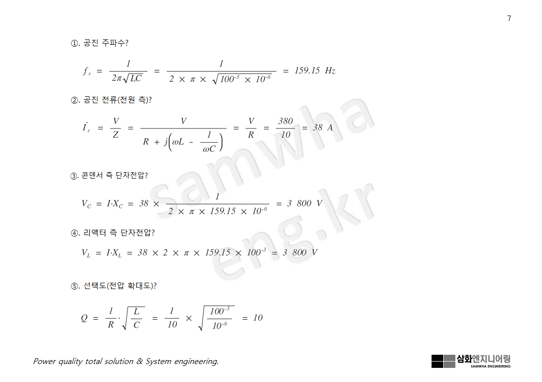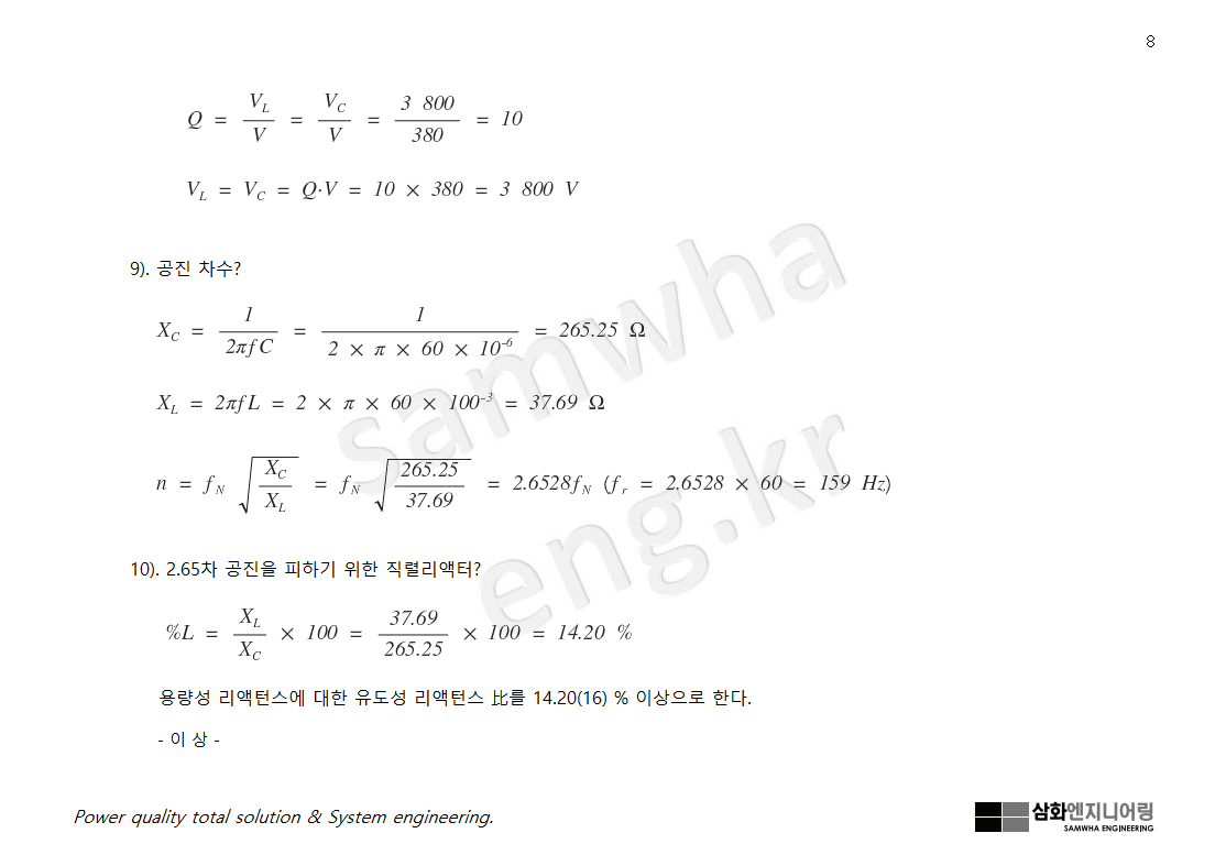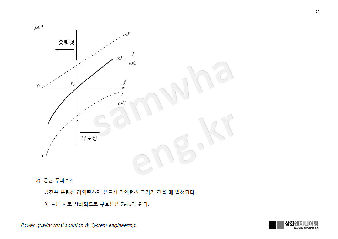 하여 콘덴서회로의 직렬리액터 용량설계는 특정고조파에서 직렬공진이 없도록 설계돼야 한다.
