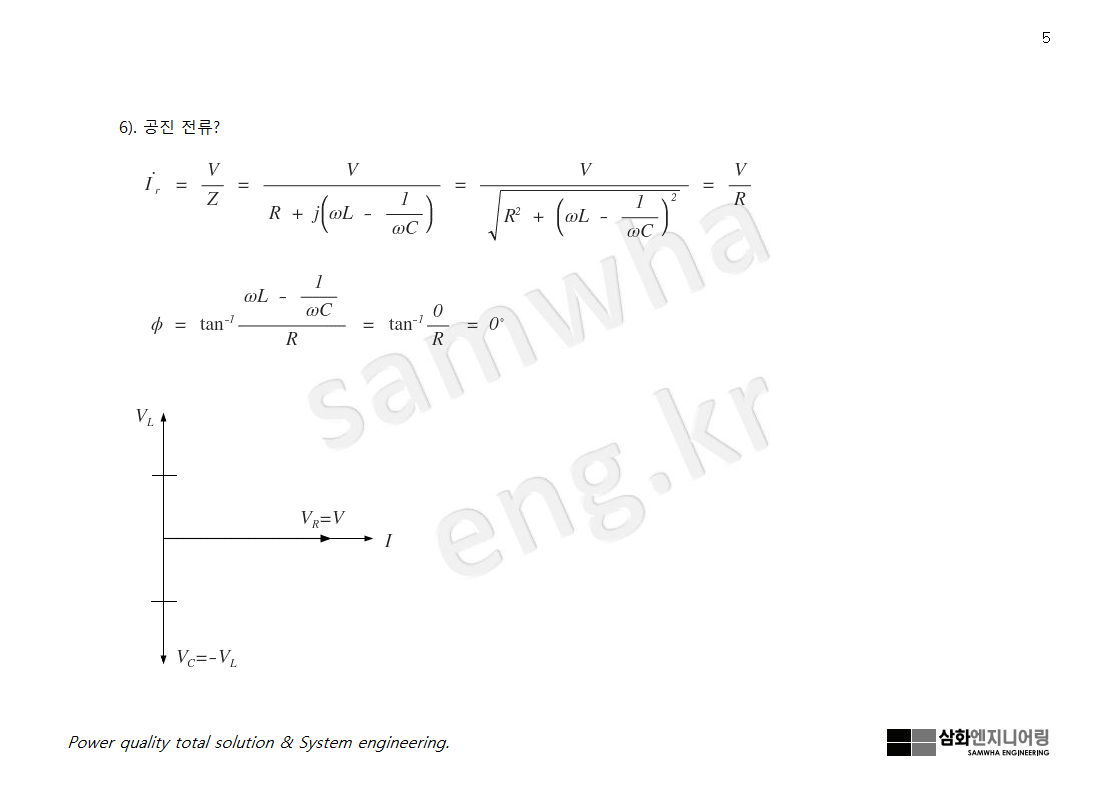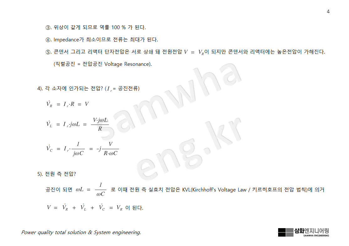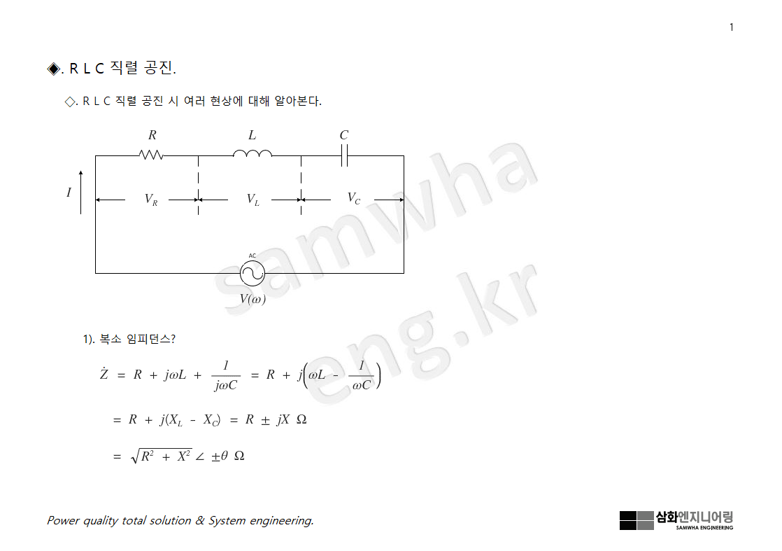 하여 올바른 직렬리액터 선정의 기초가 되는 R-L-C 직렬공진에 대해 다음과 같이 살펴본다.