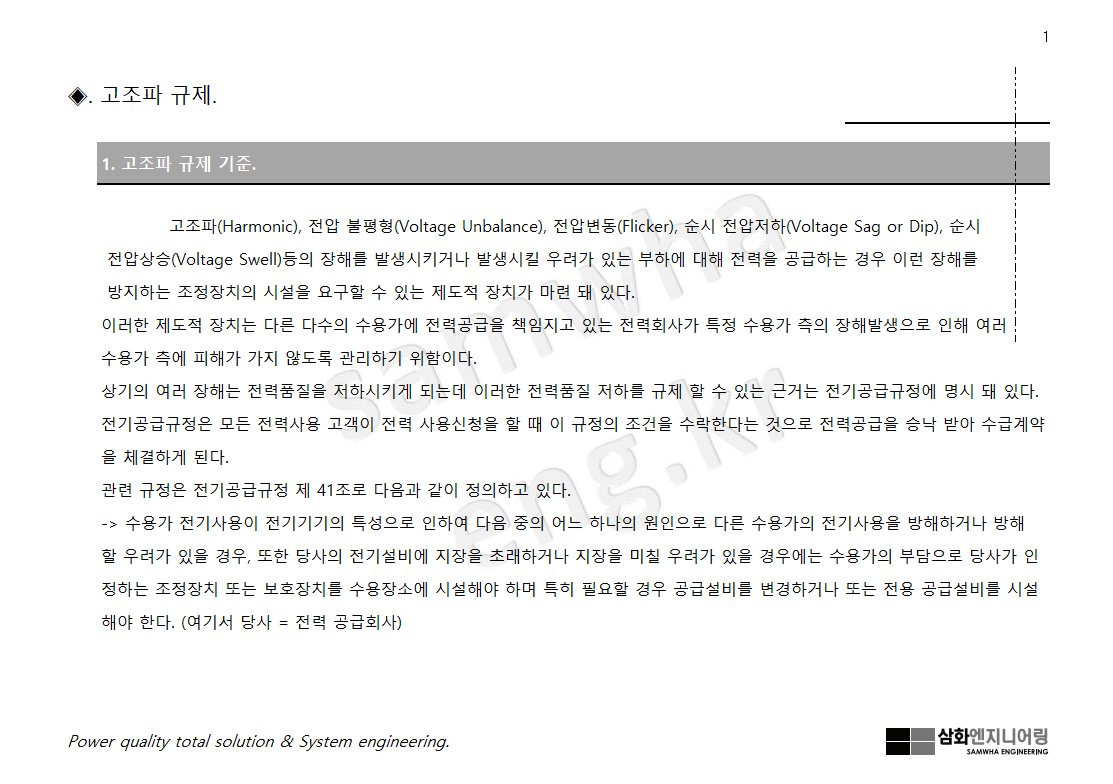 고조파 규제, 관리기준에 대해 아래와 같이 살펴본다.