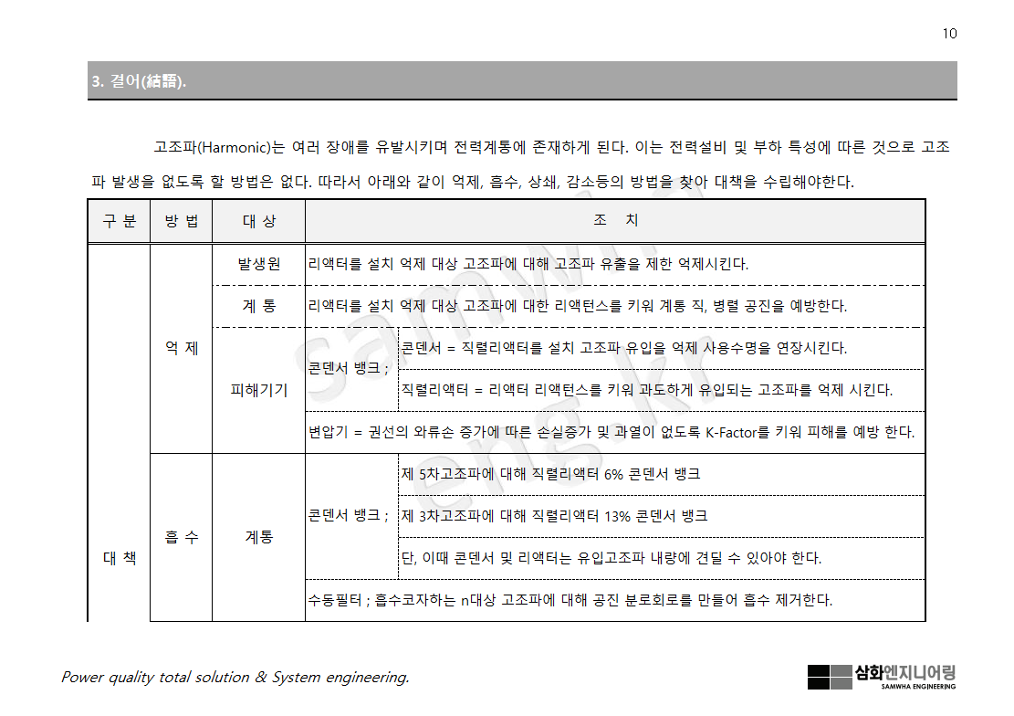 더불어 고조파 대책 방법을 요약한다.