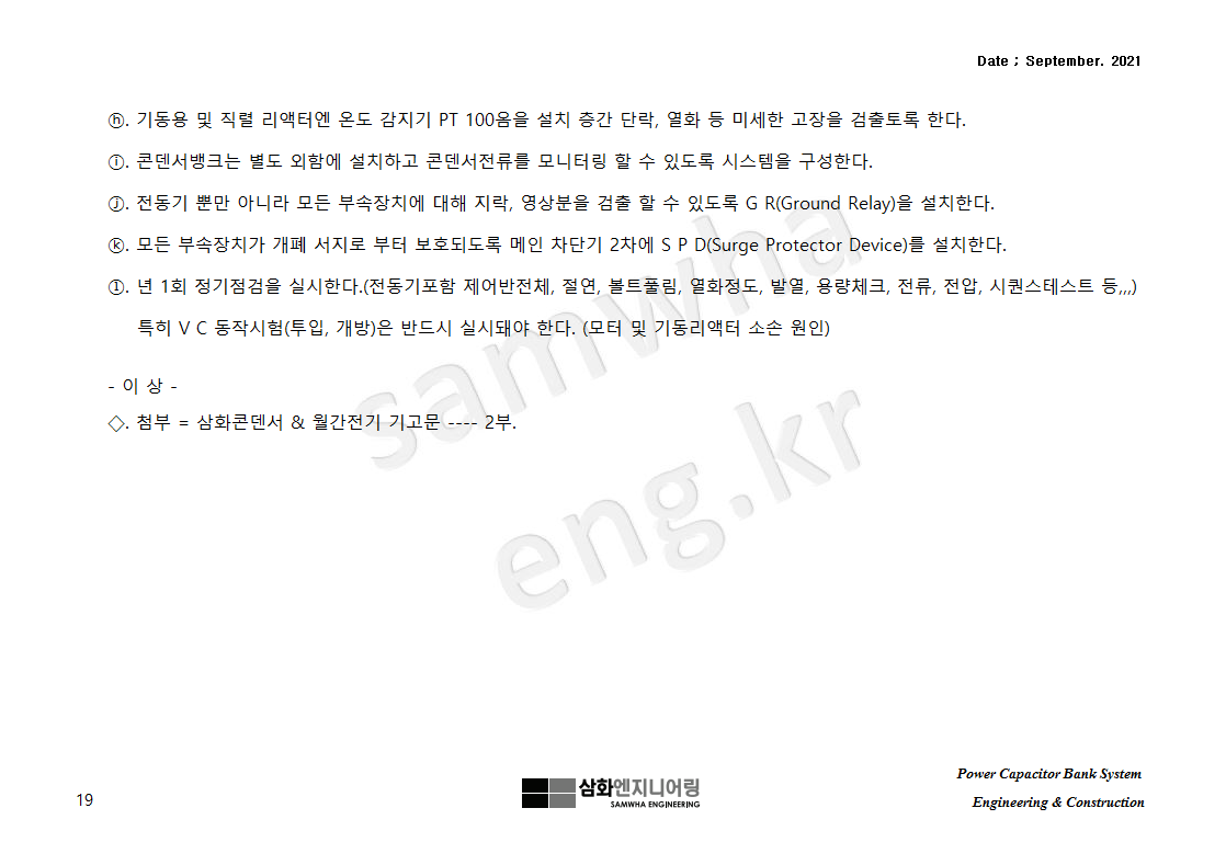 *. 첨부 = 삼화콘덴서 자료 & 월간전기 기고문 ---- 각 1부씩.