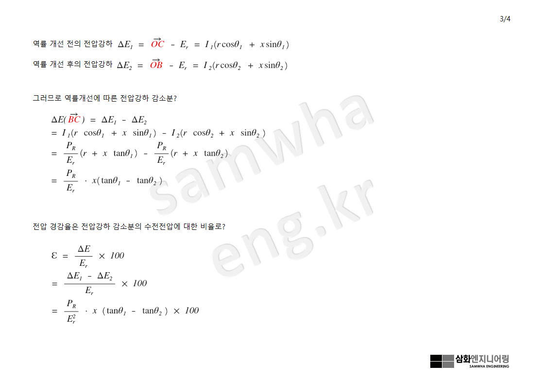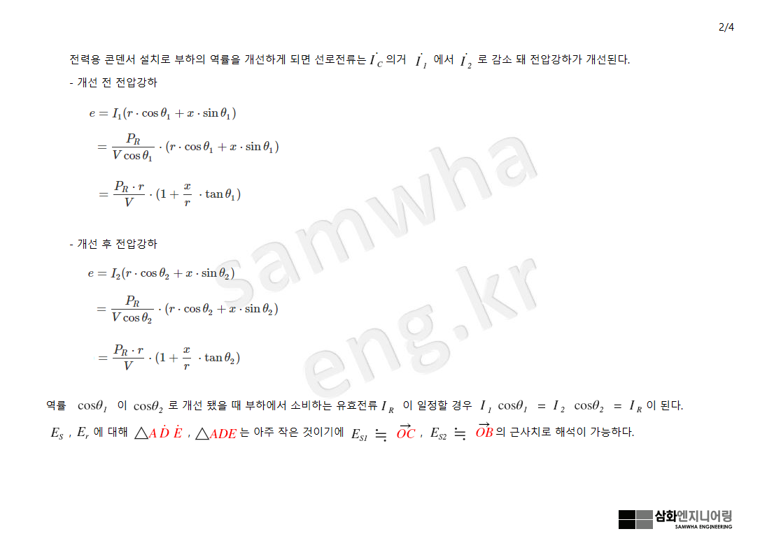 그렇다면 콘덴서 설치로 얼마만큼의 전압강하가 경감되는지?