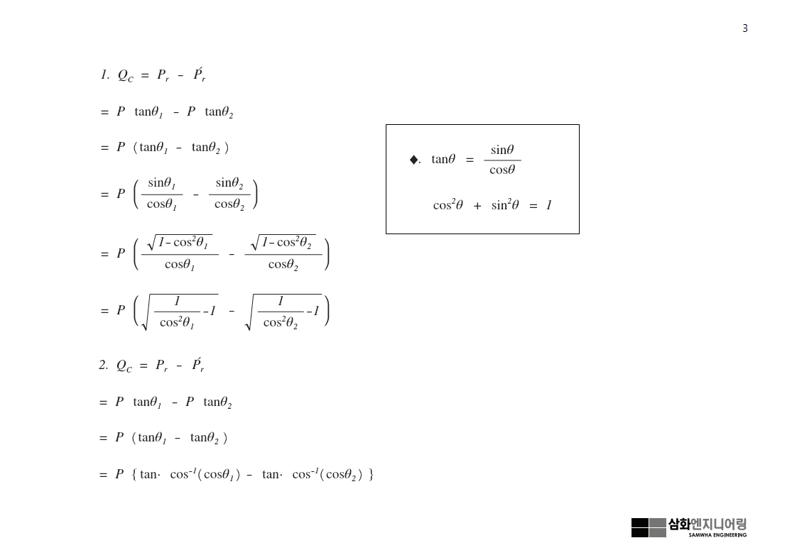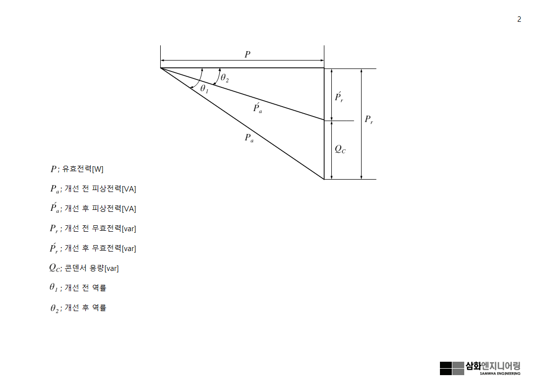 역률개선에 필요한 전력용콘덴서의 용량계산?