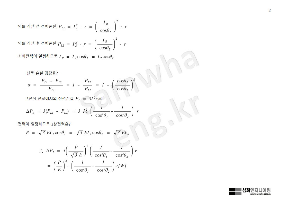 - 콘덴서 설치에 따른 선로의 저항손 경감? -