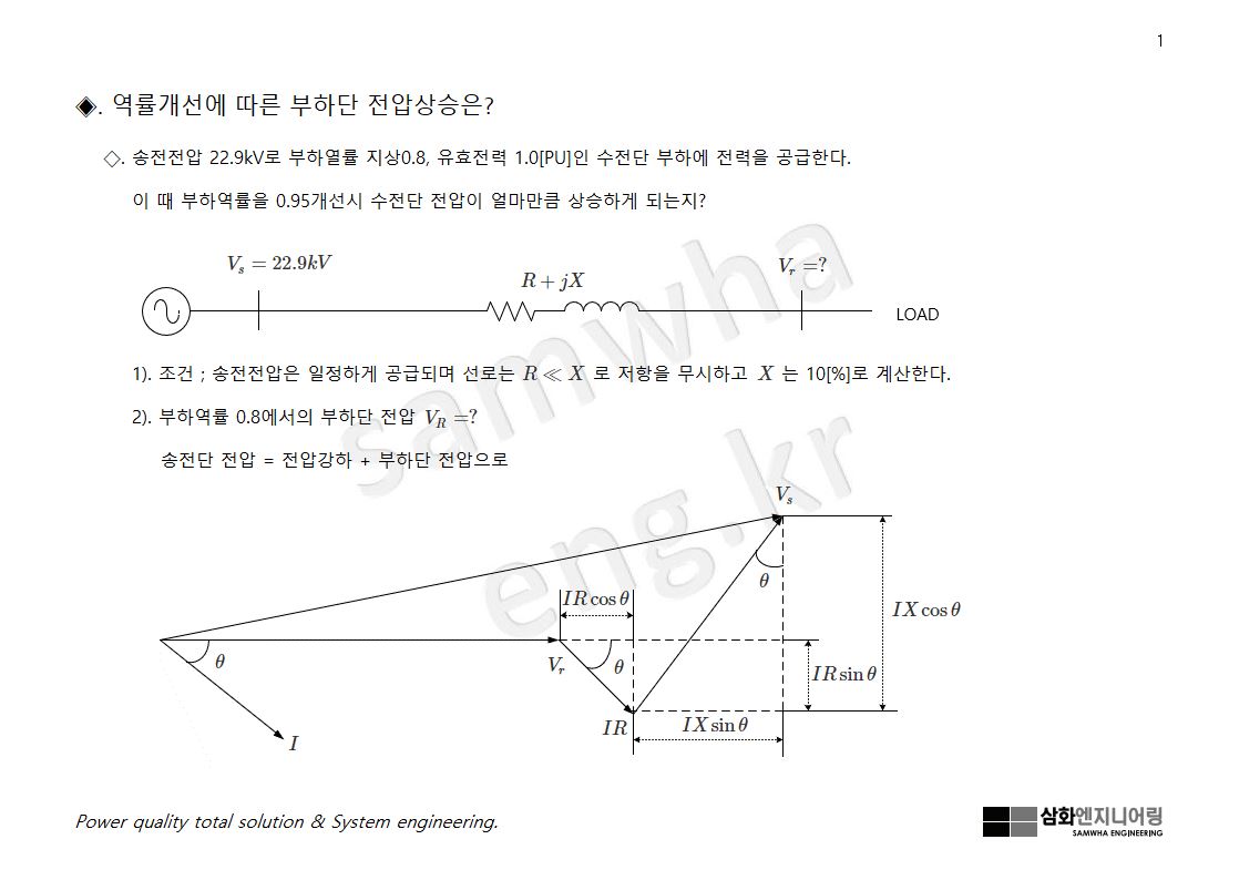 역률을 개선하면 전압강하가 개선 돼 수전단 전압이 상승한다.