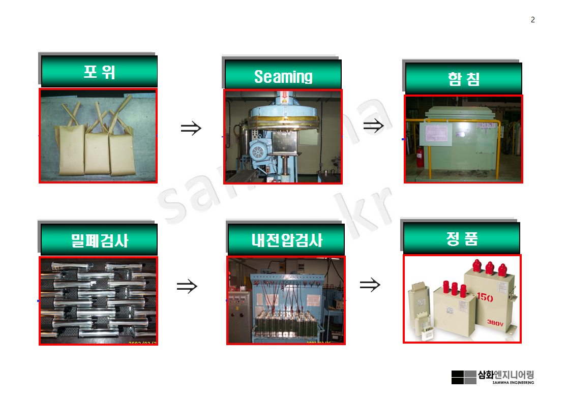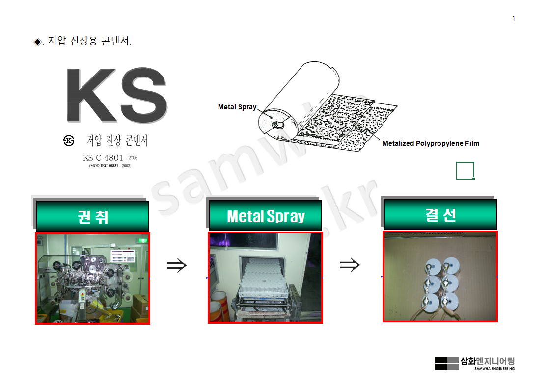 전압강하 및 부하 역률 개선을 목적으로 사용하는 필름 권회형 콘덴서인 저압진상용 콘덴서가 어떻게 만들어 지고 있는지 사용자 입장에서 많이 궁금해 한다.