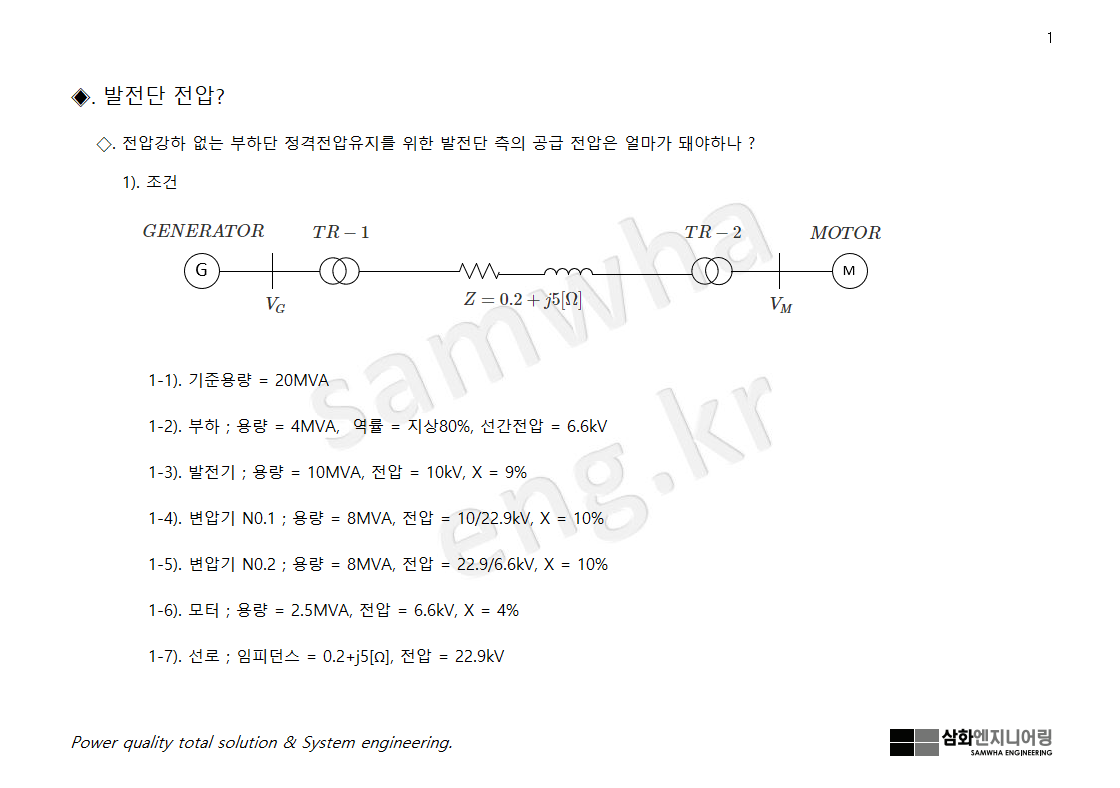 즉, 선로임피던스에 의해 발생된 전압강하 크기를 고려 발전단 측 전압을 결정해야 수전단 측에 원하는 정격전압이 도달하게 된다.