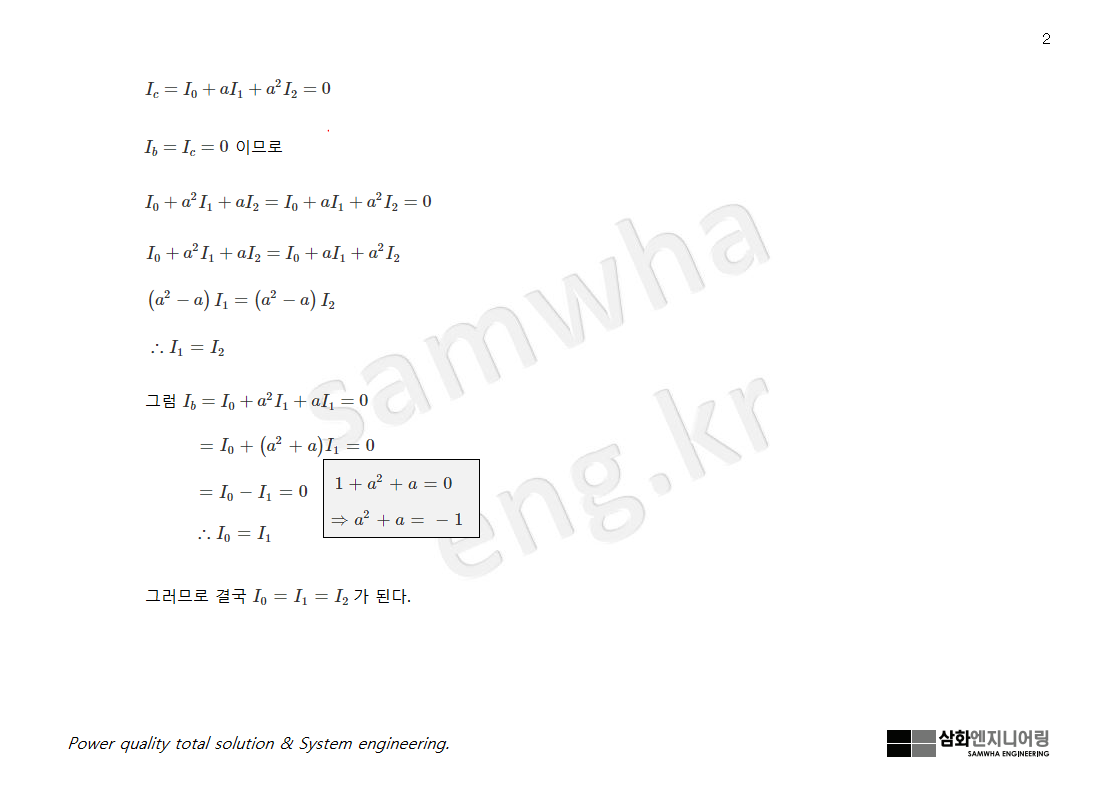 a 상에 흐르는 전류는 정상 분 = 역상 분 = 영상 분이 돼