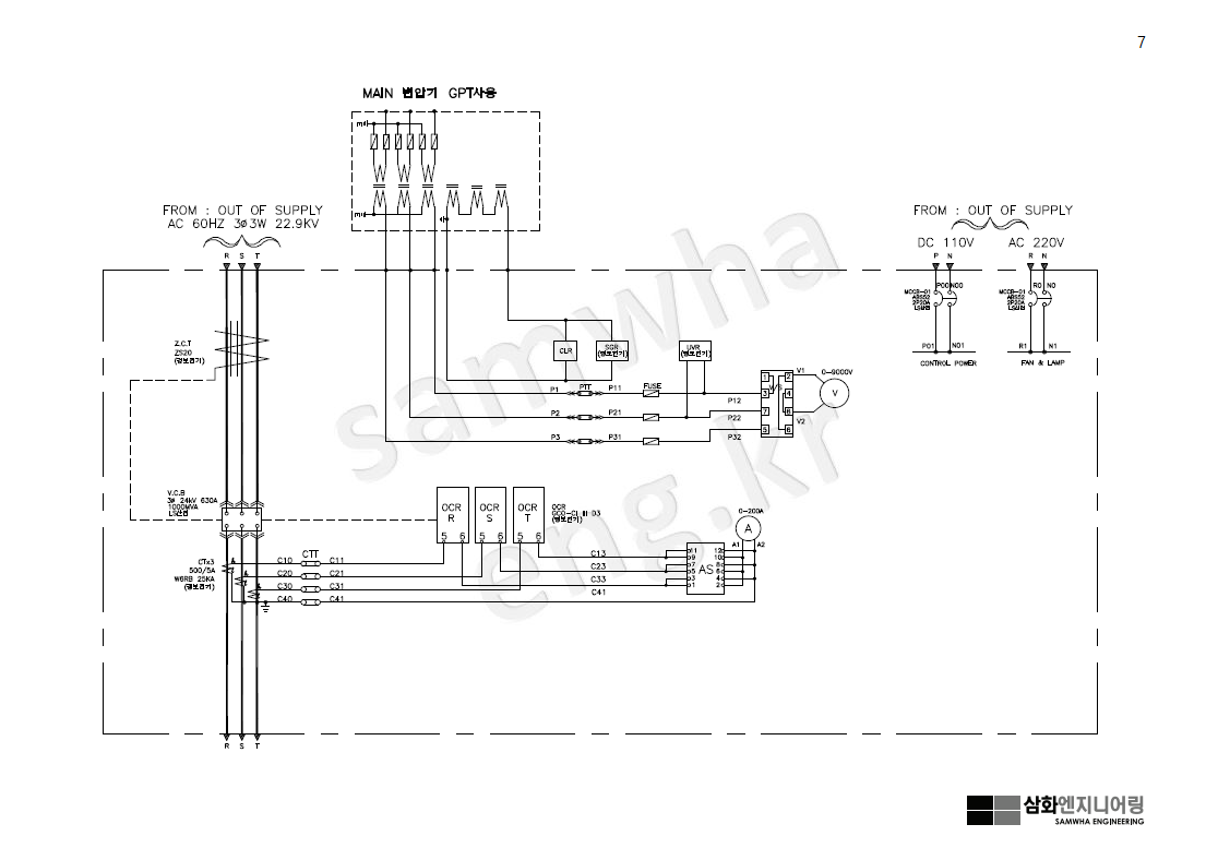 반드시 살펴야 할 것은 방전 코일 2차 결선이 전압계전기 기준으로 반드시 오픈 델타가 돼야 한다.