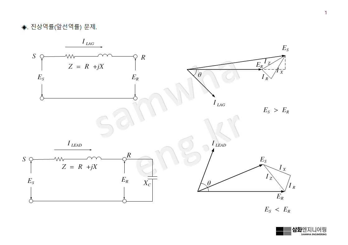 ■. 일반적인 송, 배전 계통의 부하는 대부분 코일성분이어서 부하가 걸려 있게 되면 전류가 전압보