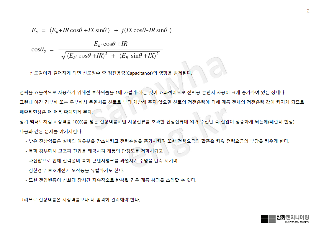 부하가 경감되는 야간 경부하시 또는 무부하시에는 선로에 분포된 정전용량의 영향으로 충전전