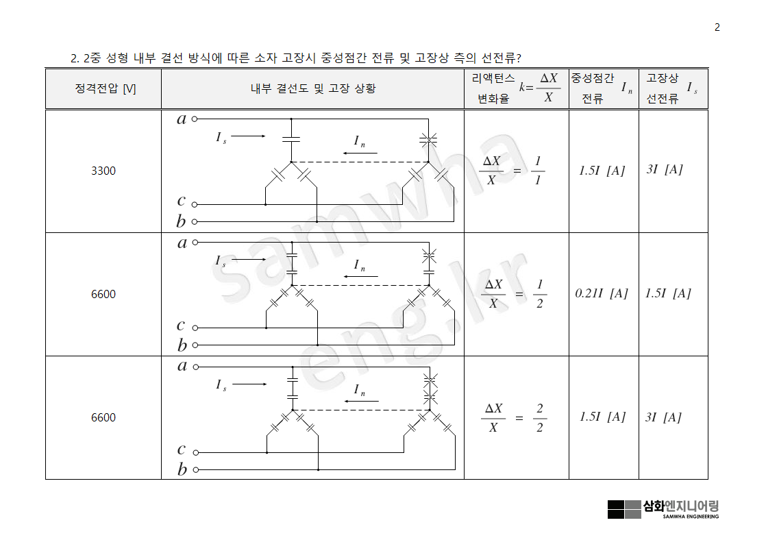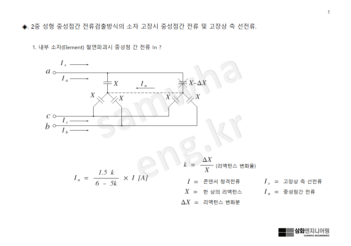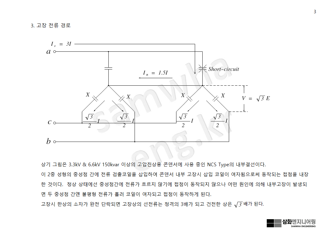 하여 이때 콘덴서 내부 고장 형태에 따른 중성점 간의 고장전류 크기를 아래와 같이 살펴본다.