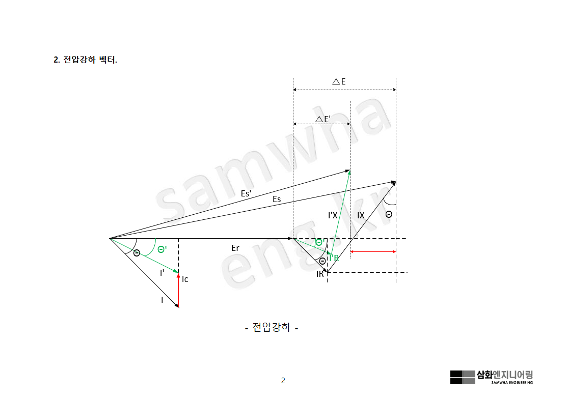 콘덴서를 설치하면 무효전류가 감소하여 전압강하를 개선시킬 수 있게 된다.