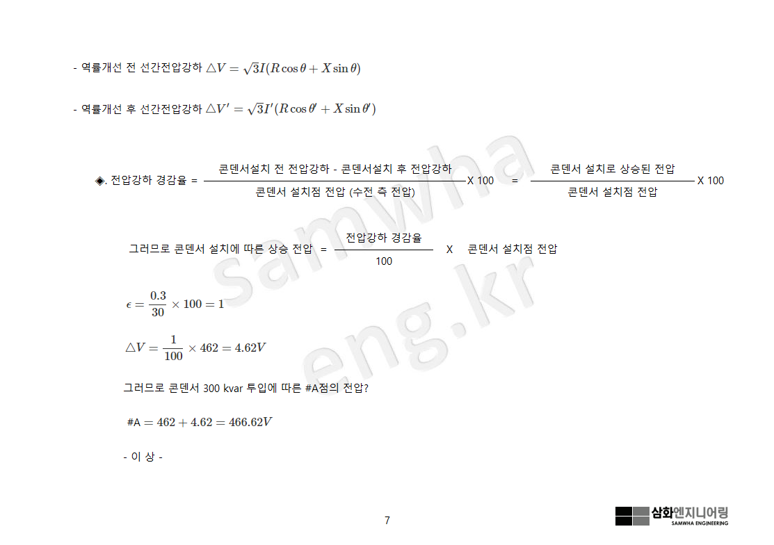 따라서 콘덴서 설치로 전압강하 경감률이 얼마나 개선되는지는 콘덴서 용량에 따라 달라질 수 있으므로 이의 이해가 중요하다.